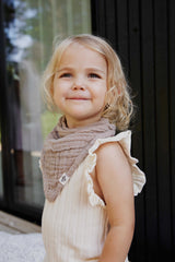 Savlesmækken med sit stilfulde trekantede bandana-design er produceret i blød 2-lags muslin-vævet økologisk bomuld. Et blødt, let og åndbart materiale, der efter vask bliver endnu blødere.