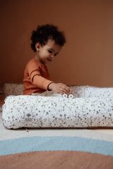 En sengeslange er en blød og fleksibel pude, der skaber en tryg ramme i juniorsengen. Den fungerer som en beskyttende kant, en hyggelig sovekammerat og en alsidig støttepude til leg, hygge og afslapning.
